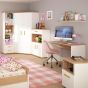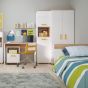 1 door desk mobile in light oak and white high gloss with orange handles. This neutral and functional kids collection is perfect for all age groups, finished in light oak and stunning white high gloss. This handy I door mobile chest with open shelf fits perfectly under matching desk unit.