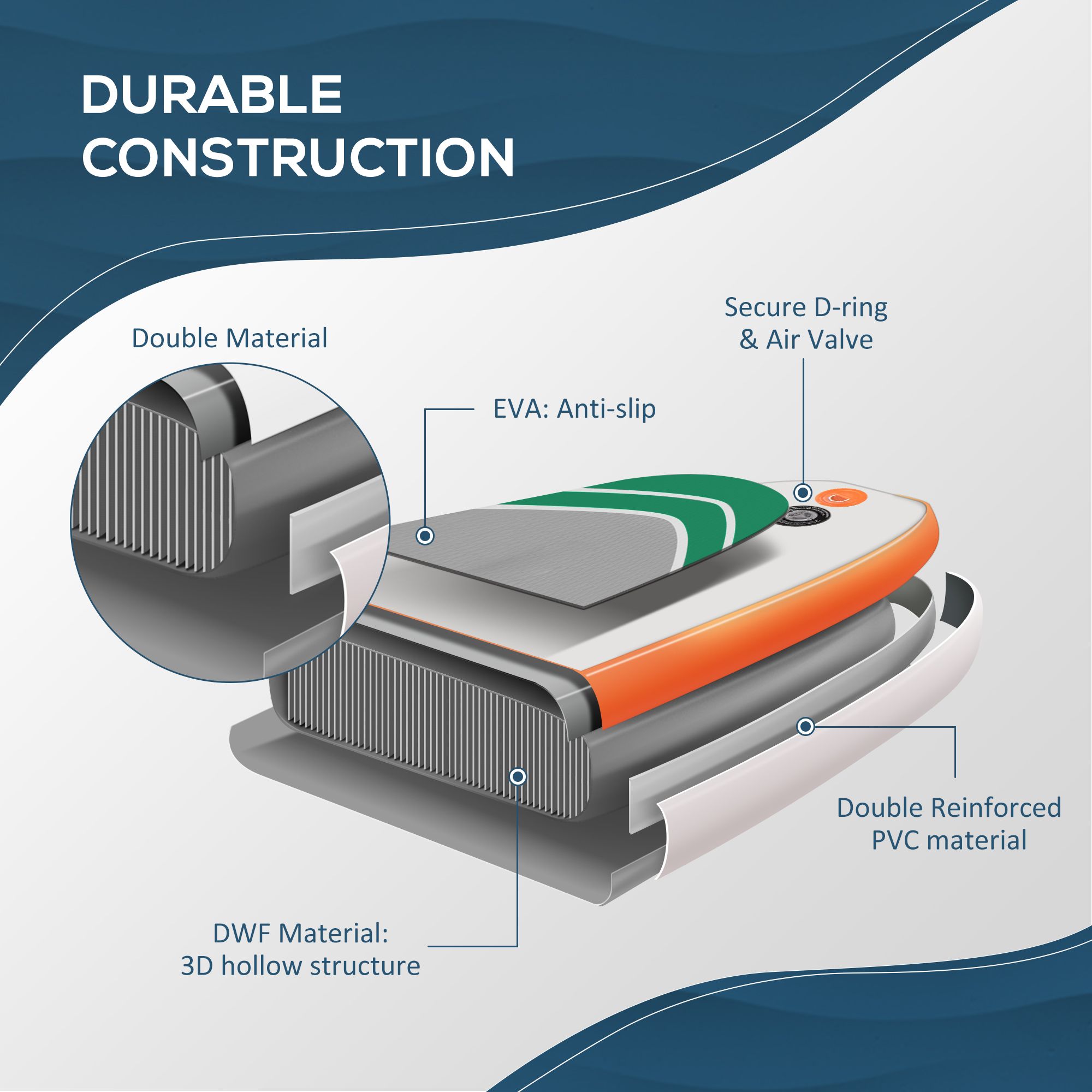 10'6" x 30" x 6" Inflatable Non-Slip Paddle Stand Up Board w/ Adjustable Aluminium Paddle, ISUP Accessories, 320L x 76W x 15H cm - White