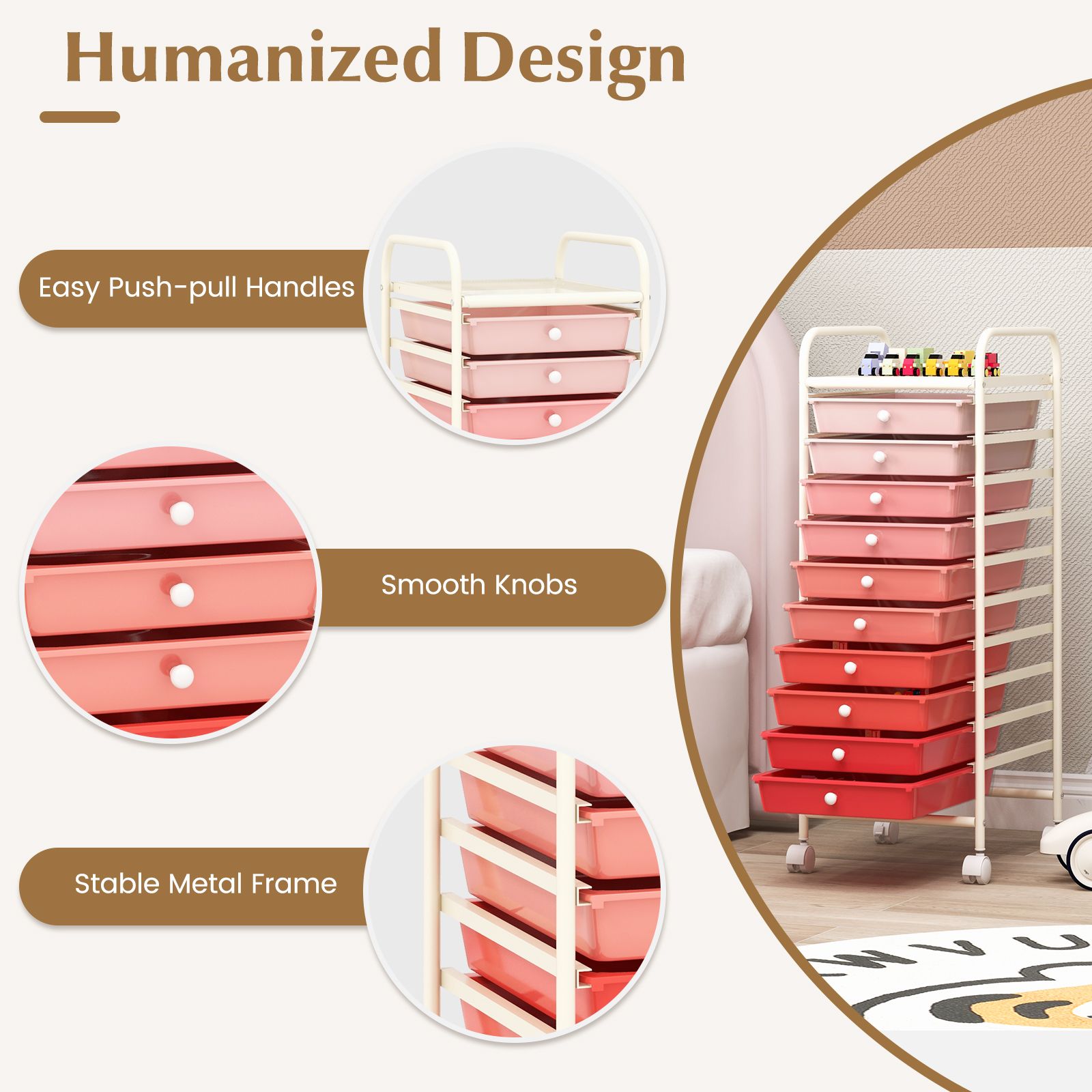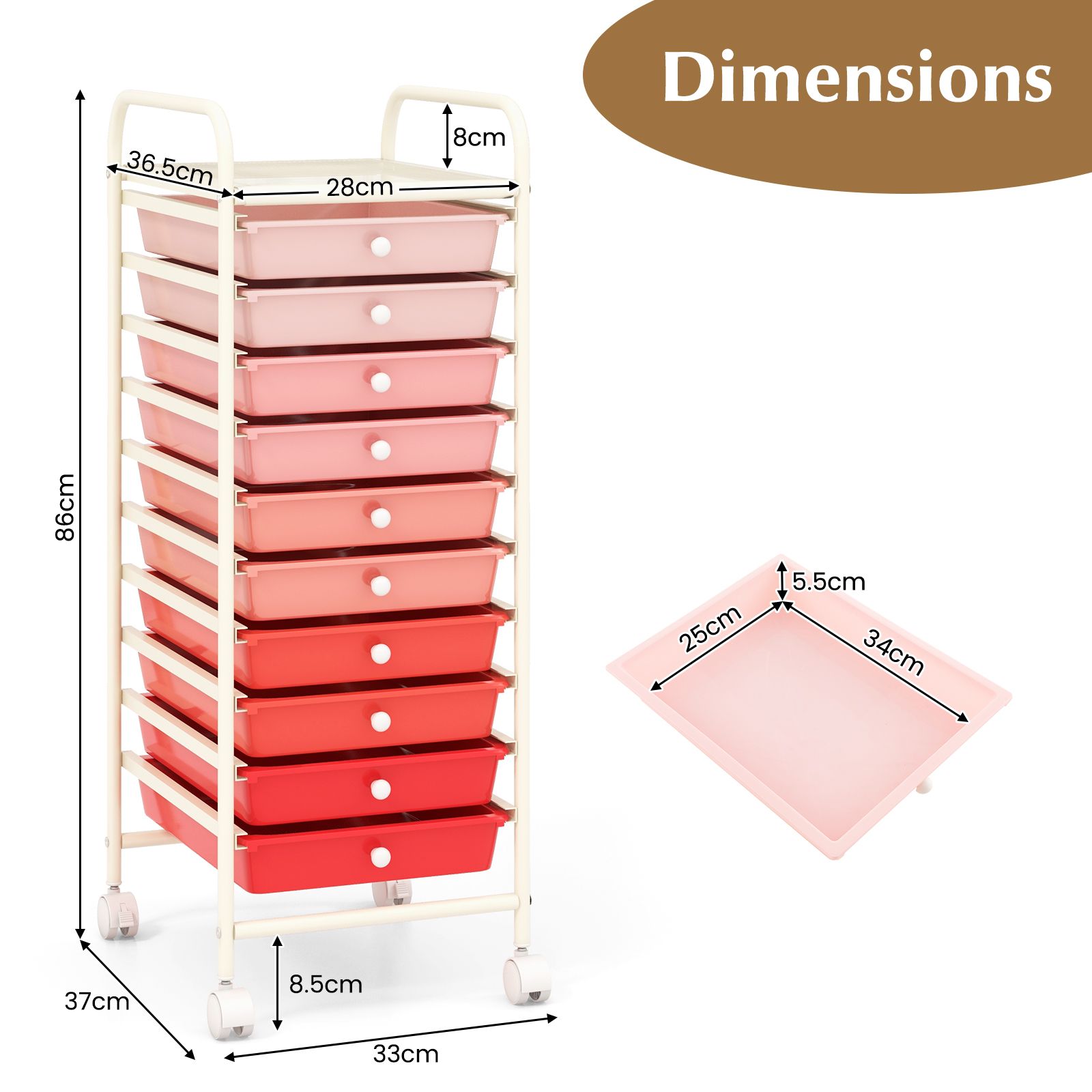 10 Drawers Mobile Storage Trolley with 4 Wheels for Beauty-Pink