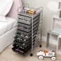 10 Drawers Mobile Storage Trolley with 4 Wheels for Beauty-Silver Grey