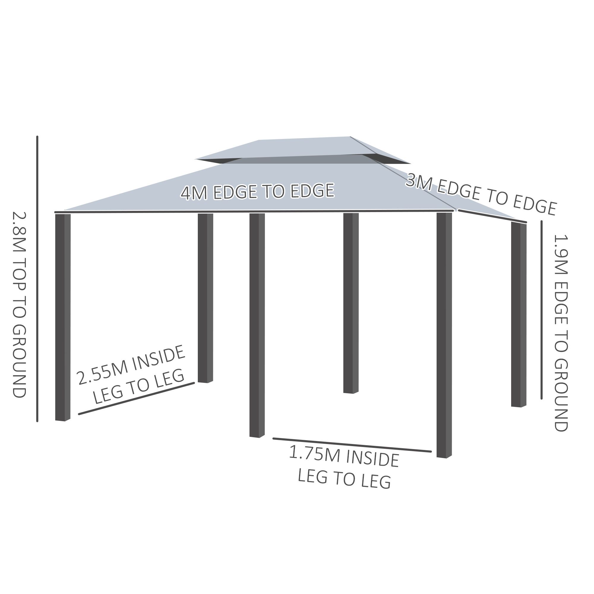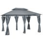 Find yourself and your outdoor party protected no matter what - go for this 3m x 4m gazebo. This beautiful and well-designed piece stands firmly in place, thanks to the thick steel structure with included ground stakes for extra support. The two-tier roof allows air to enter inside, whilst keeping rain and wind out - so you have a cool and dry spot inside. The curtains are made from UV-resistant polyester, keeping you protected and creating privacy when required, securely fixed on the frame with hook and loop straps. It's time to take your outdoor parties up a notch with this stylish number.
