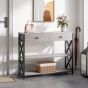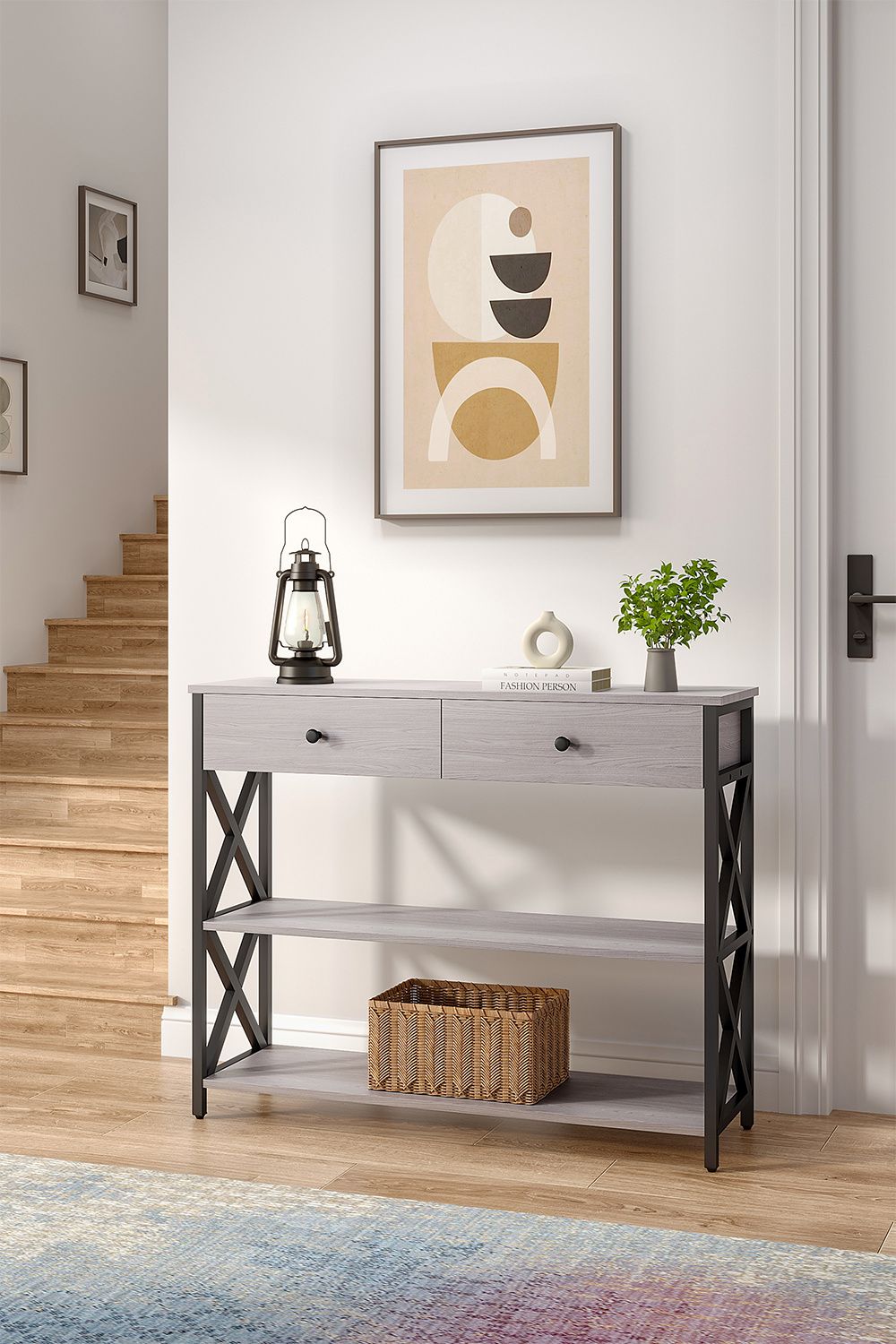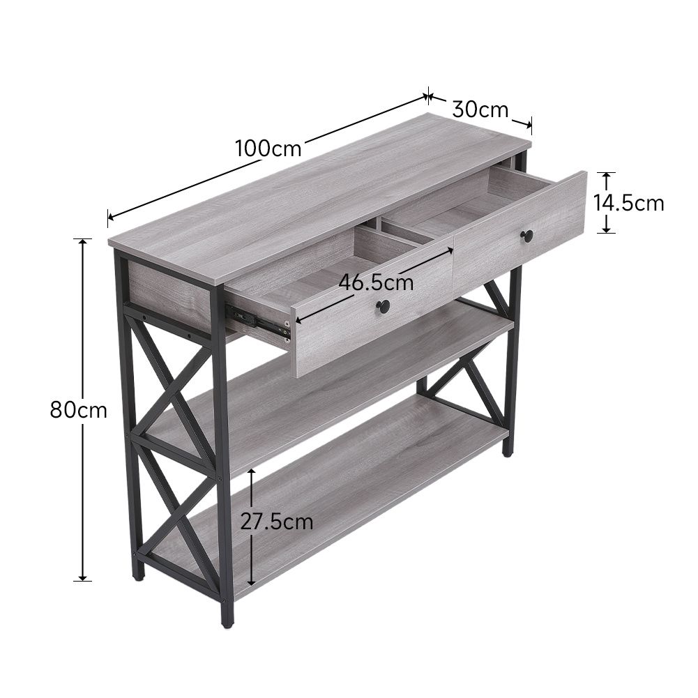 100 Cm W Rustic Grey Narrow Wooden Console Table With Drawers