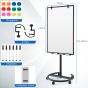 100 cm x 65 cm Height-Adjustable Magnetic Whiteboard on Wheels-Black & White