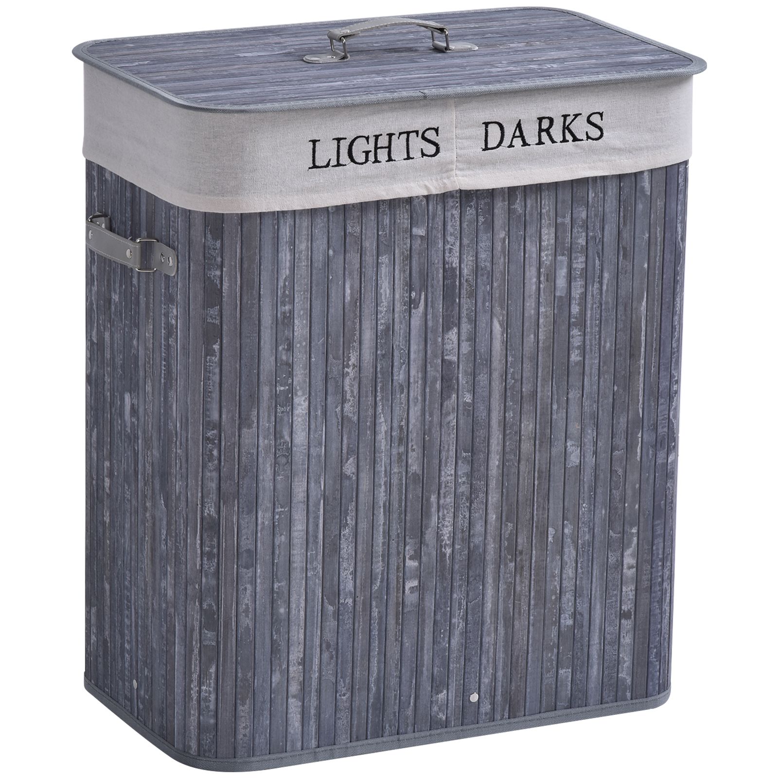 100L Collapsible Natural Wood Laundry Hamper Organizer Clothes Washing Basket Bin Storage Box w/Lid Removable Lining 52x32x63cm, Grey