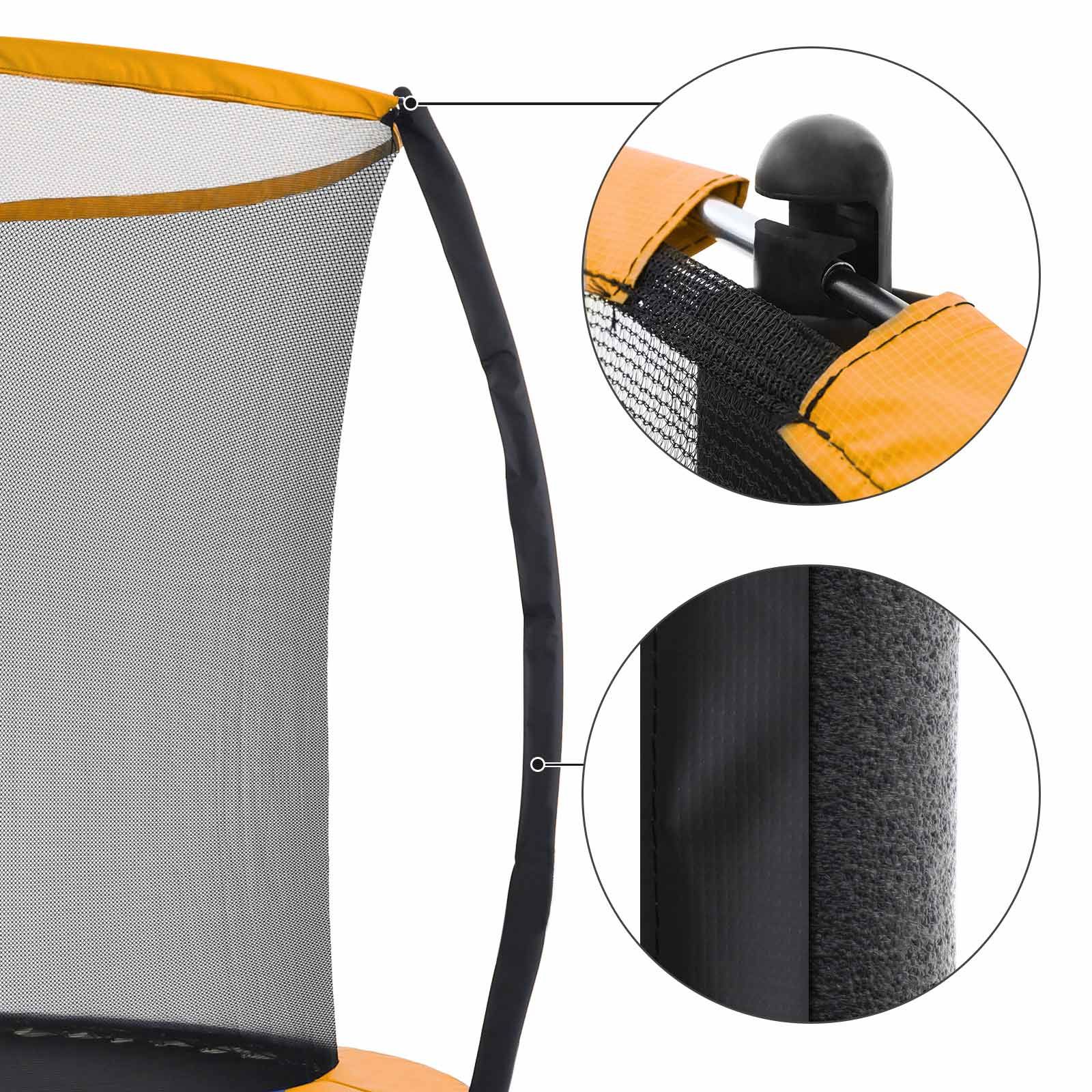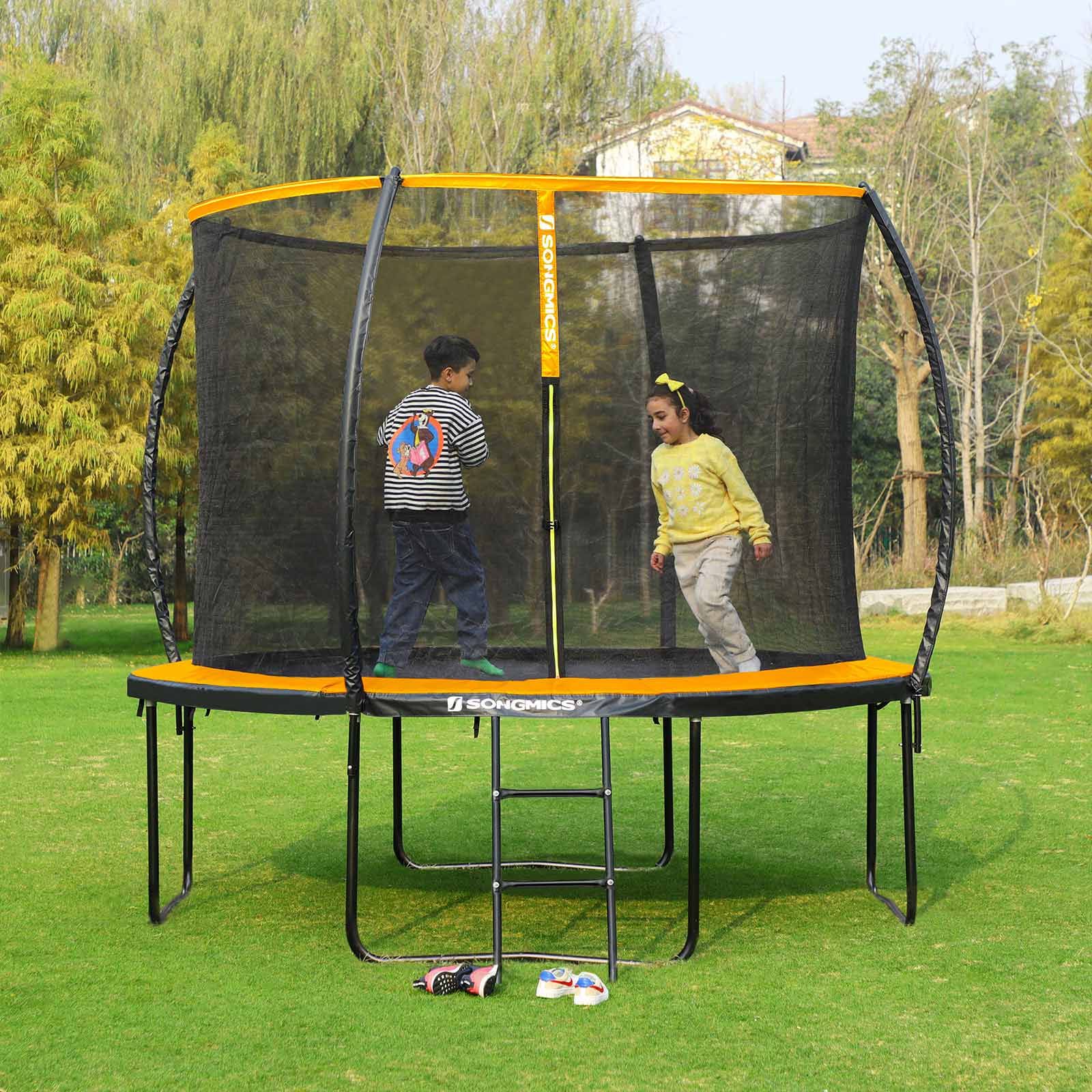Fun in the GardenThis 10 ft (305 cm) trampoline is the perfect way to have fun on a warm afternoon (and maybe even sneak in a little workout). Let your children safely bounce to their heart's content with this trampoline while you enjoy gardening or getting ready for a delicious barbecue.Above All, Safety MattersWhile it's important to have fun, it's even more important to keep safe. This 10 ft trampoline was designed with a dense inner mesh that is more resistant to impacts and reduces the chance of hitting the poles on the outside. The arch poles are covered with a EPE foam for even more safety.
