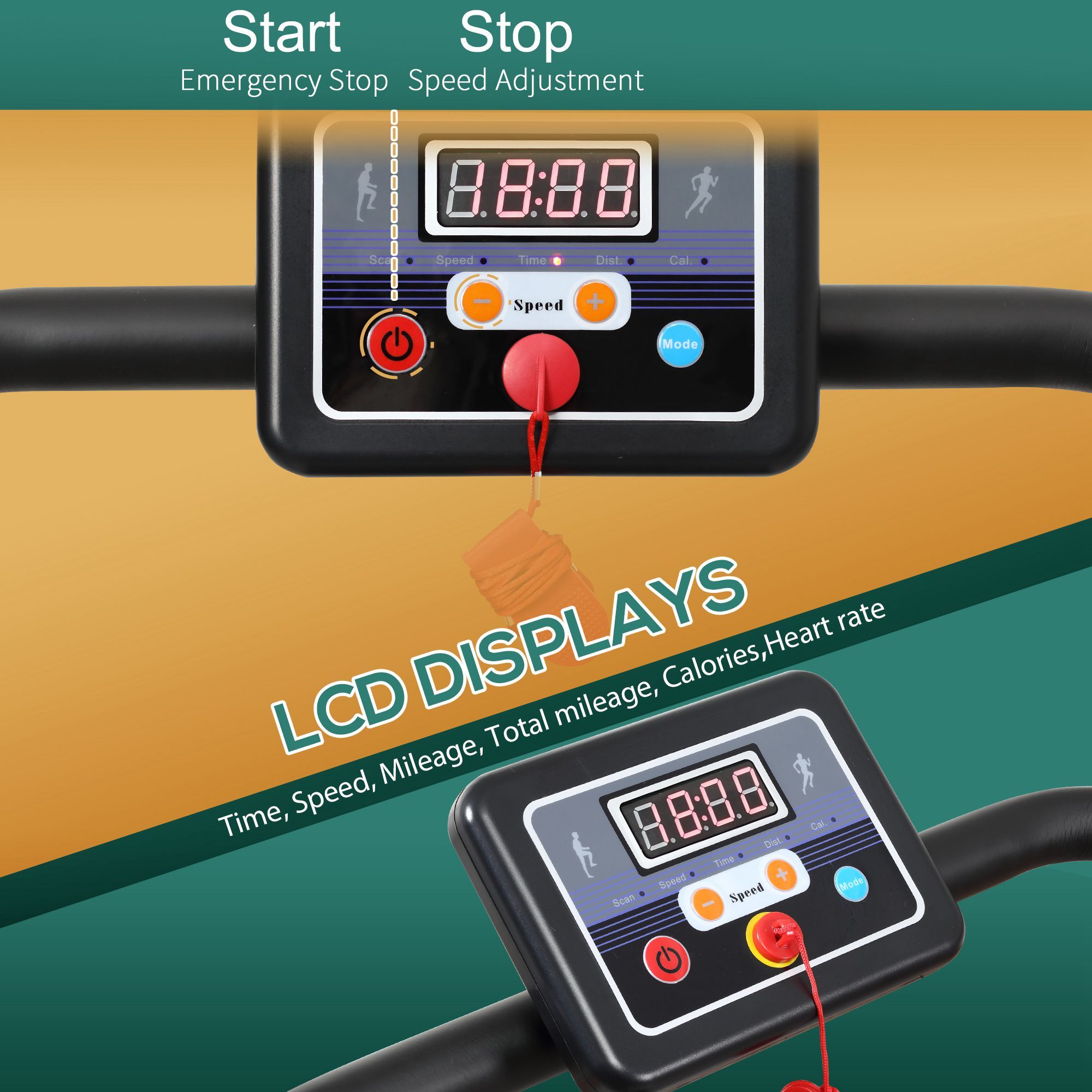 - The emergency stop switch will help you to stop in case that you fall down on the running belt