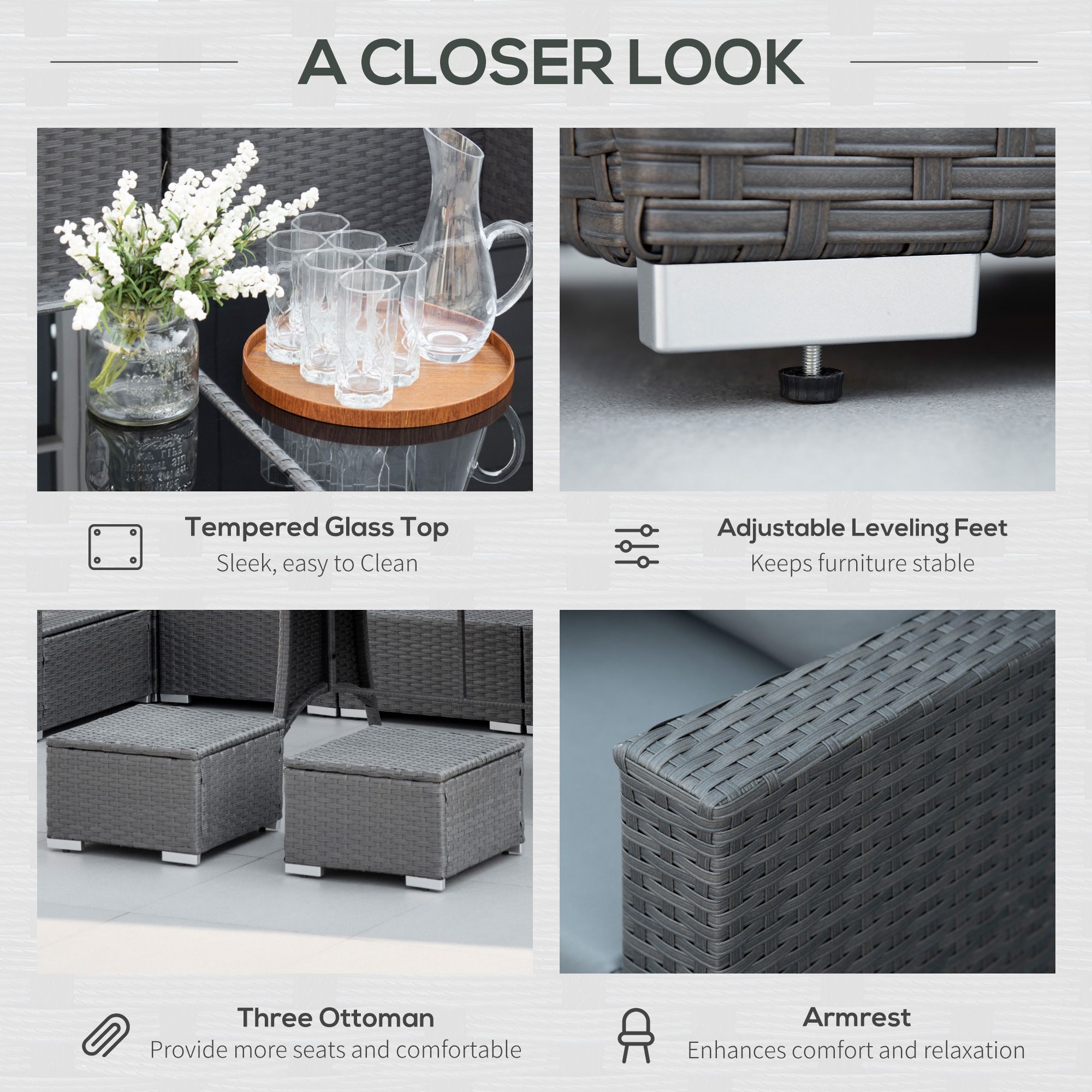 10PC Garden Rattan Corner Dining Sofa Set 9-seater Patio Tables Stools Outdoor Wicker Lounge Conservatory Furniture w/ Cushions & Pillow
