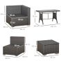 - Made from a steel frame construction and covered with fire retardant and weather resistant PE rattan • 10pc rattan set with multiple configurations to suit • Polyester cushion cover with zippered design for easy washing • Toughened tempered glass for superior strength and safety • Thick padded cushions for ultimate comfort • Assembly required • Include: 3 x corner sofa, 3 x armless sofa, 3 x footrest, 1 x table, 7 x seat cushion, 7 x back cushion, 3 x footrest cushion, 4 x throw pillow