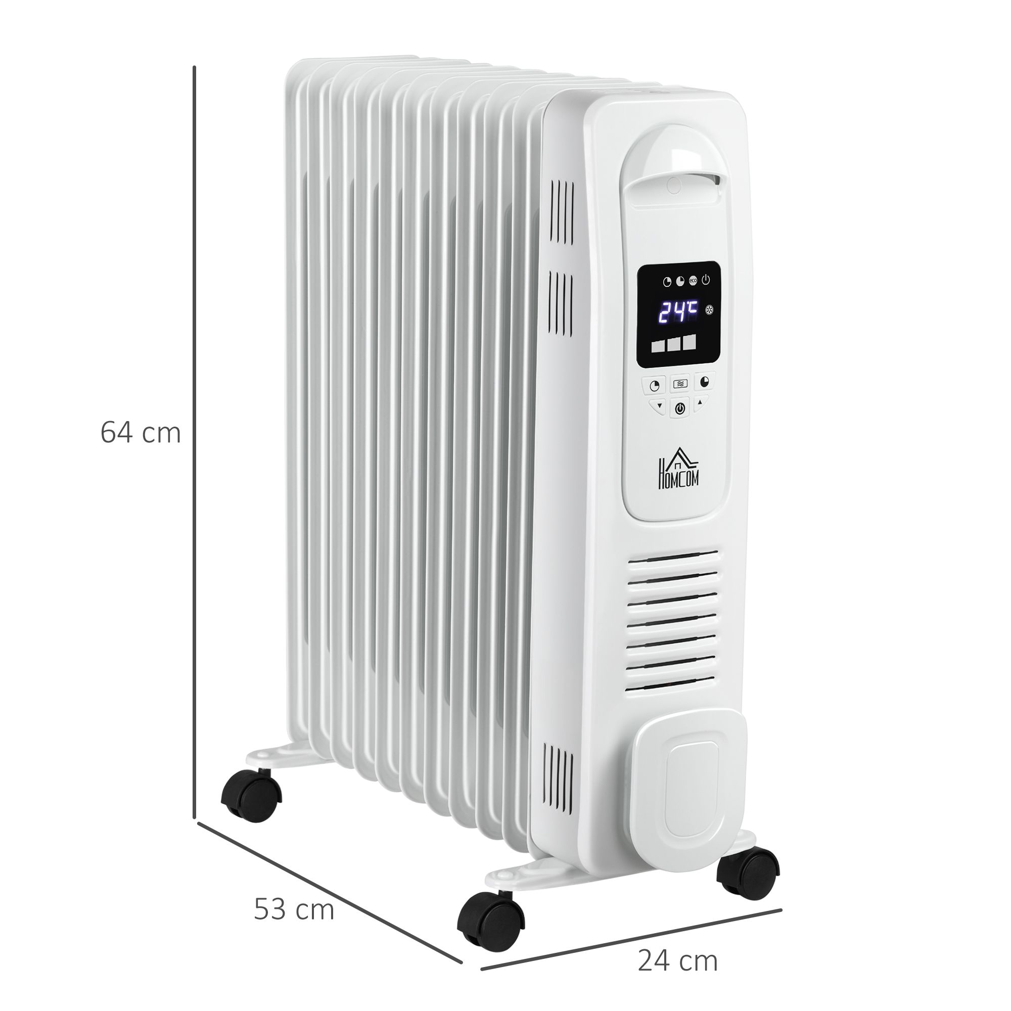 11 Fin Portable Heater 2720W Oil Filled Radiator with Timer Remote Control - White