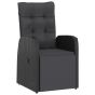 Enjoy a nice meal outdoors with your family and friends with this garden dining set! Weather-resistant material: PE rattan, also known as poly rattan, is weather resistant and easy to clean. It remains beautiful on the outside for a long period of time. It offers great quality, convenience and an aesthetic look.Sturdy frame: The powder-coated steel frame makes the outdoor dining set sturdy and stable for daily outdoor use.Practical tabletop: The smooth tabletop is made of glass which is easy to clean with a damp cloth. Additionally, the sturdy tabletop is perfect for placing meals, drinks, and other decorative items.Reclining function: The garden chairs are specially designed with a reclining function so that you can adjust the backrest as per your comfort by using the button on the side.Comfortable and convenient cushions: The thick and soft seat and back cushions provide ultimate comfort during your sitting time. The low-maintenance polyester cushion covers can be easily removed and washed.