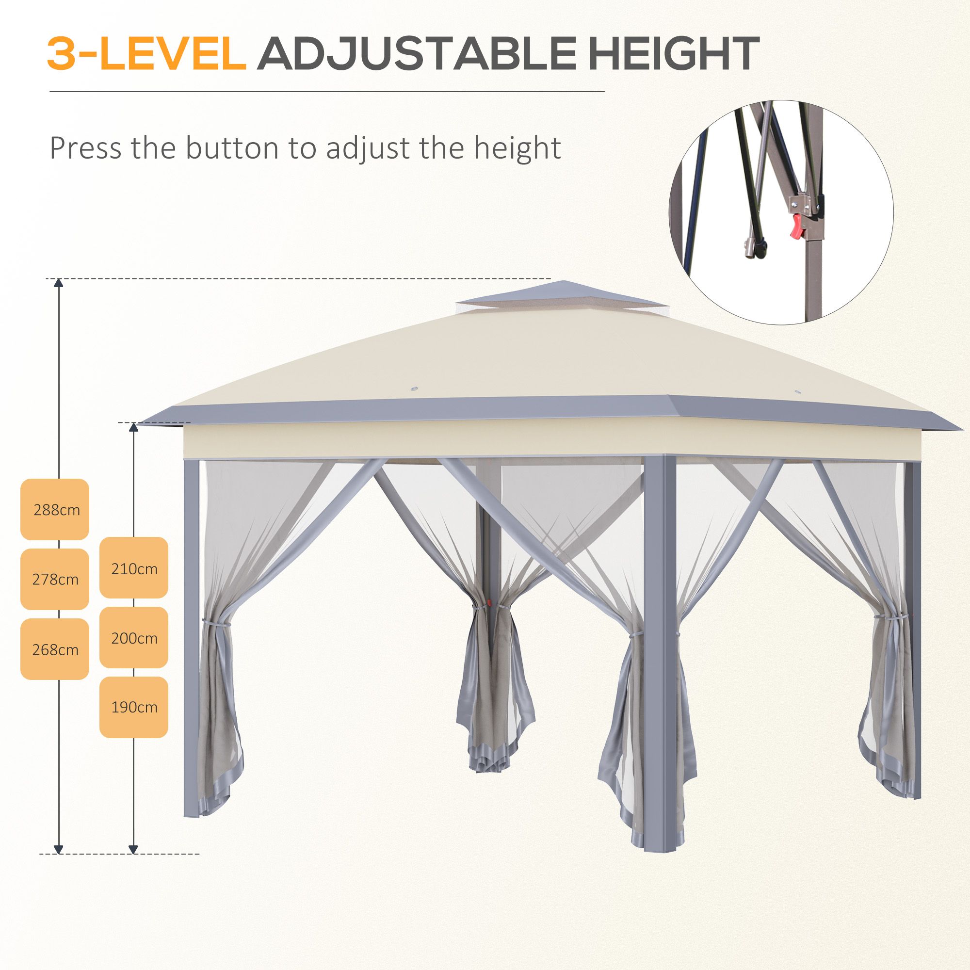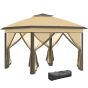11' x 11' Pop Up Canopy, Double Roof Foldable Canopy Tent with Zippered Mesh Sidewalls, Height Adjustable and Carrying Bag, Event Tent Beige