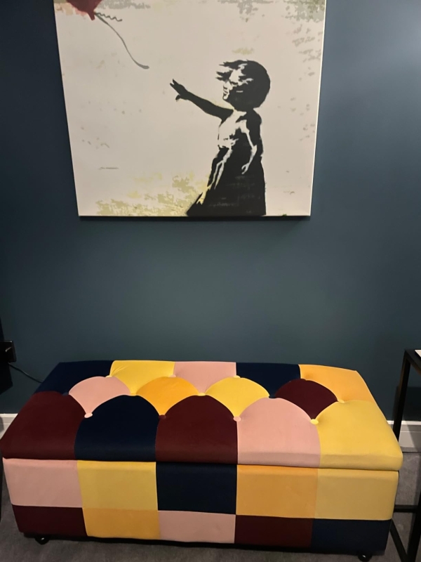 114 x 47 x 47cm Velvet Storage Ottoman, Button-tufted Footstool Box, Toy Chest with Lid for Living Room, Bedroom, Multicoloured