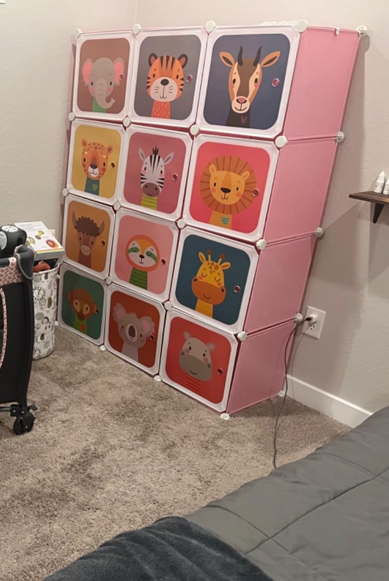 12 Cube Portable Kids Storage Cabinet with Hanging Section - Pink