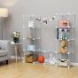 Descriptions: Everything fits in here... Use our metal wire storage cabinet for clothes, shoes, office supplies, books, magazines and... and you have 12 cubes and PP sheets at your disposal as cube bottom. So you can decide by yourself which cube should have a bottom and which cube only consists of a wire mesh. Where it can stand... A shelving unit for every room with its grids. Very easy to fit in any room: living room, bedroom, nursery, hall, bathroom, basement, garage, etc. It should be protected from the weather such as sun, rain and wind, so you can enjoy it for a long time. How it is put together ... A comprehensive assembly instruction is included in the delivery (in 5 languages). Connect the wire mesh with plastic connectors. At each corner such a connector is mounted and wire mesh is simply inserted. It is important to make sure that everything is well connected and the grids are "locked in place" and that nothing can be loosened. For this we also put a rubber mallet in the package, so you can knock together everything well.