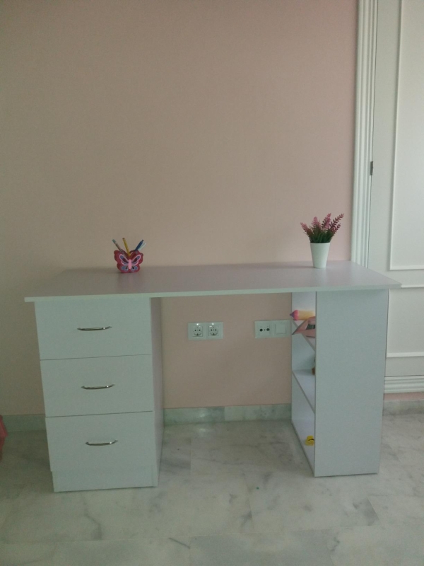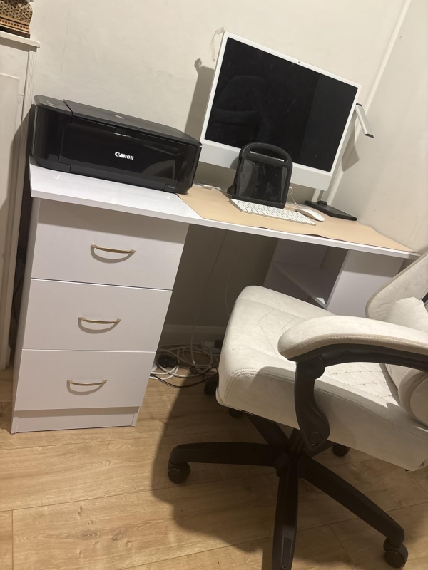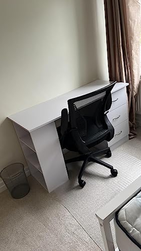 120cm Computer Desk Writing Table PC Workstation Study Laptop Stationery w/ 3 Shelf & Drawers White