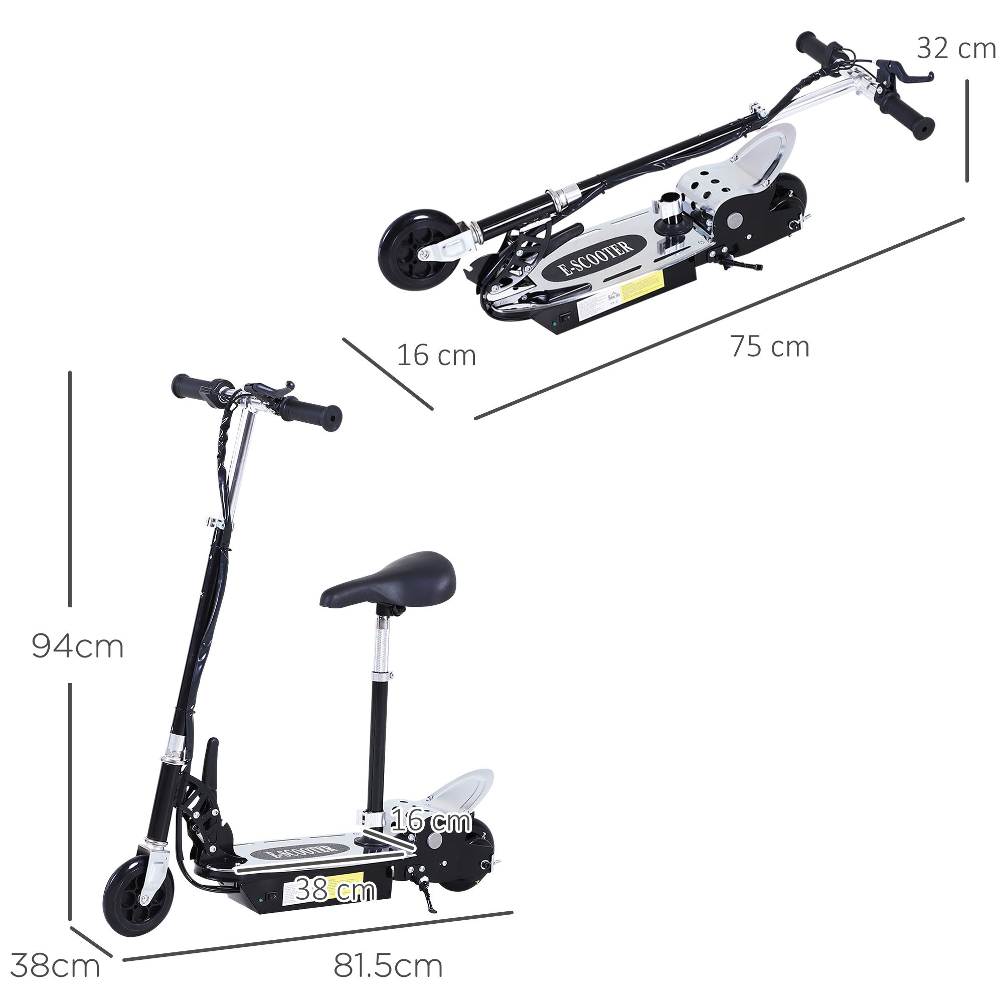 120W Teens Foldable Kids Powered Scooters 24V Rechargeable Battery Adjustable Ride on Outdoor Toy (Black)