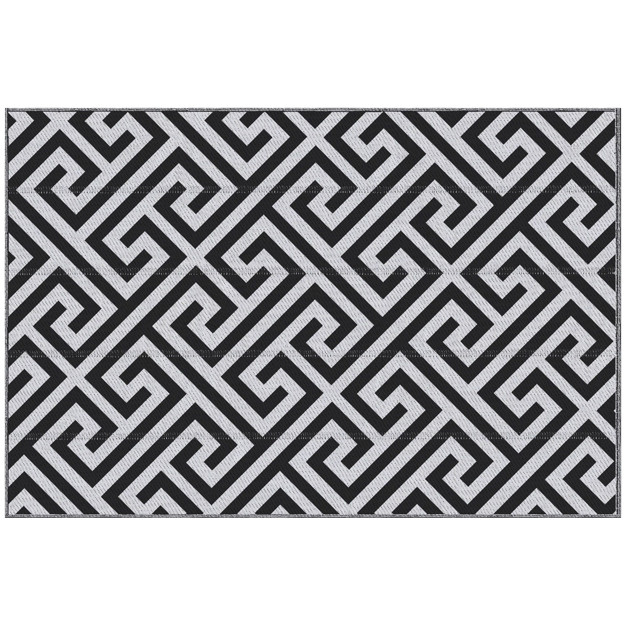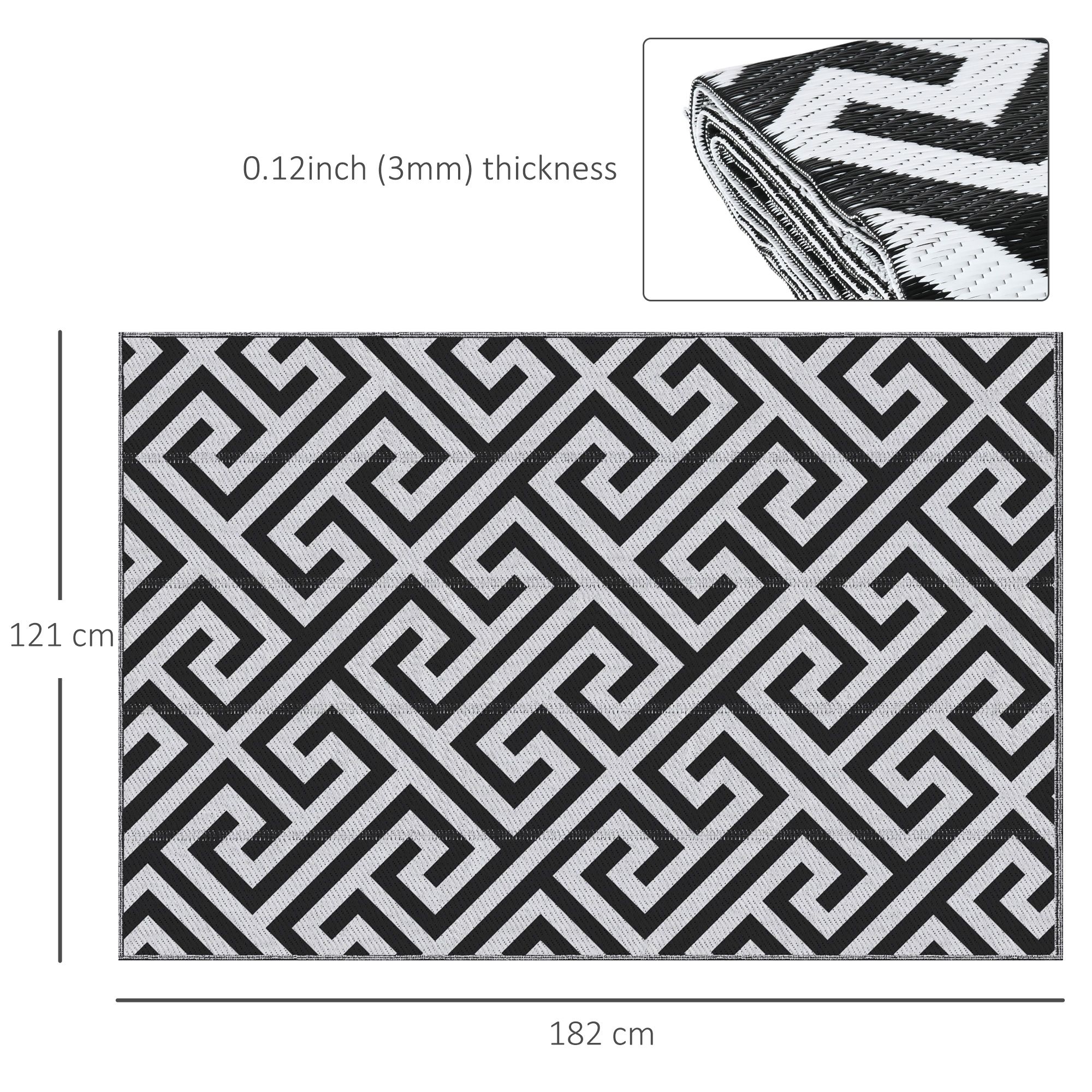 121 x 182 cm(4x6ft) Outdoor Rug Reversible Mat Plastic Straw Rug Portable RV Camping Mat for Garden Deck Picnic Indoor, Black & White