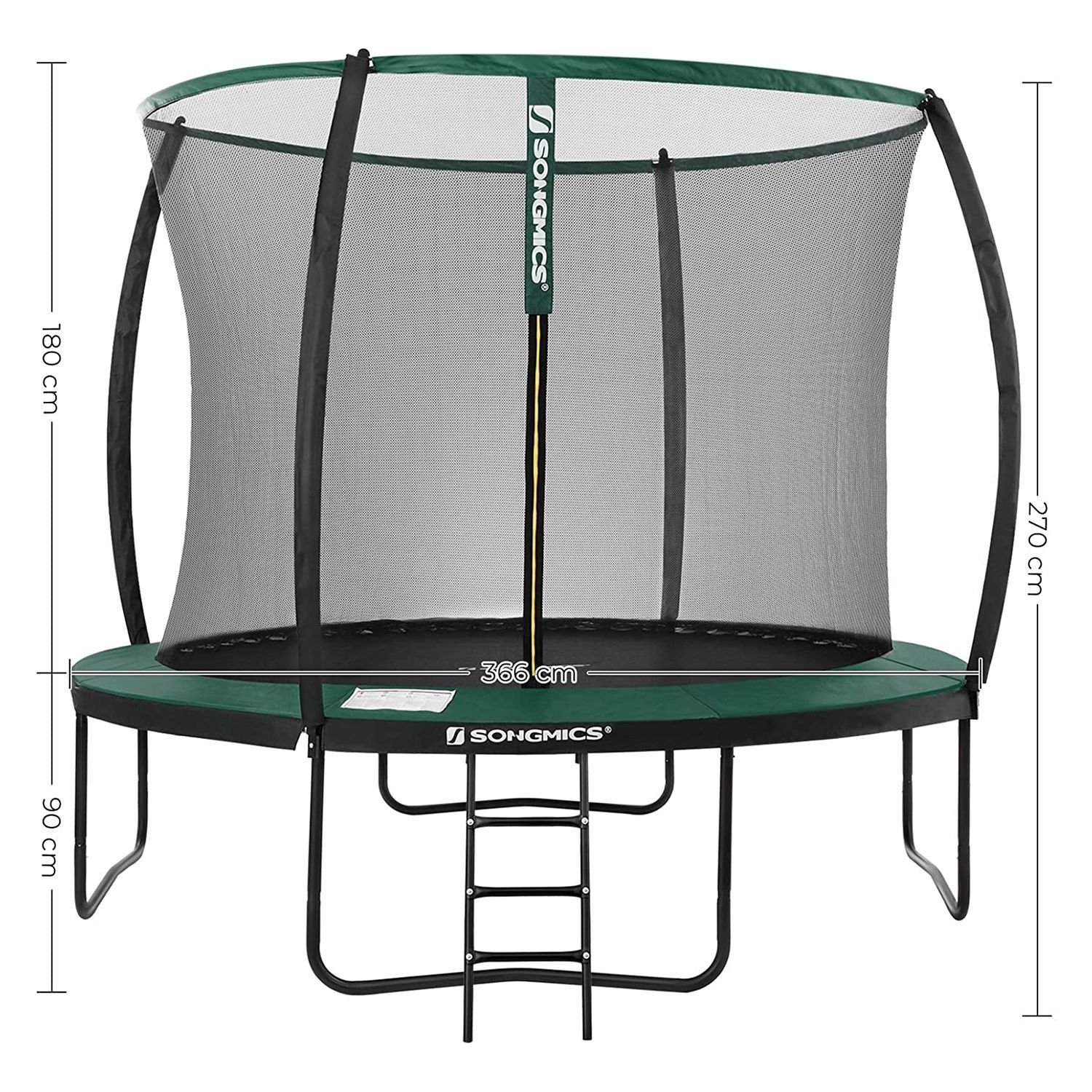 Fun in the GardenThis 12 ft (366 cm) trampoline is the perfect way to have fun on a warm afternoon (and maybe even sneak in a little workout). Let your children safely bounce to their heart's content with this trampoline while you enjoy gardening or getting ready for a delicious barbecue.Above All, Safety MattersWhile it's important to have fun, it's even more important to keep safe. This 12 ft trampoline was designed with a dense inner mesh that is more resistant to impacts and reduces the chance of hitting the poles on the outside. The arch poles are covered with a EPE foam for even more safety.