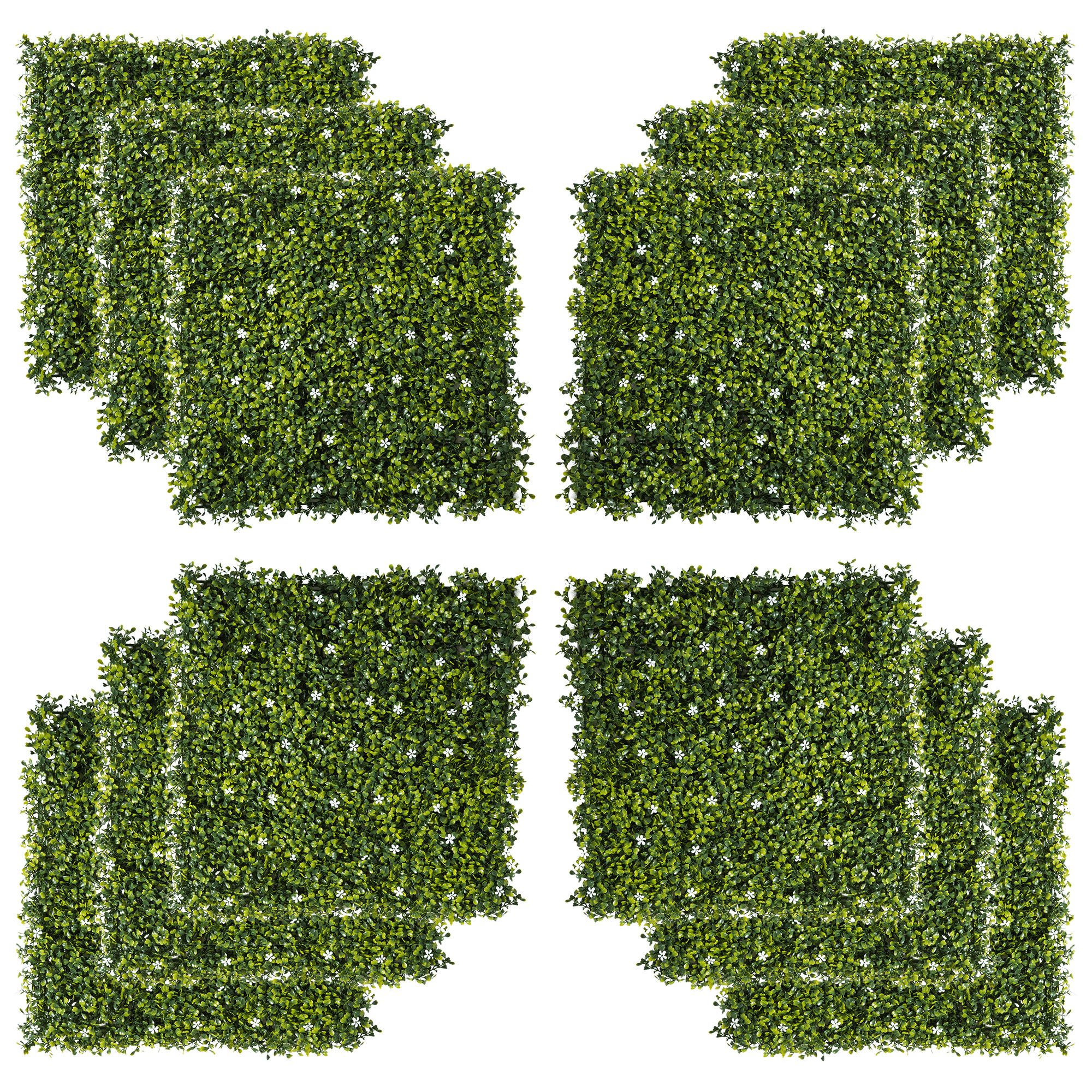 12PCS Artificial Boxwood Wall Panels 50cm x 50cm Grass Privacy Fence Screen Faux Hedge Greenery Backdrop Encrypted Milan Grass