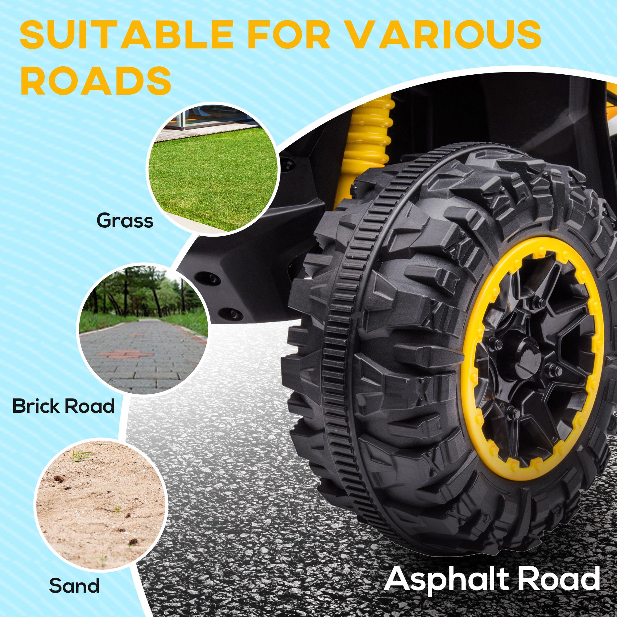 12V Quad Bike with Forward Reverse Functions, Ride on Car ATV Toy with High/Low Speed, Slow Start, Suspension System, Horn, Music, Yellow