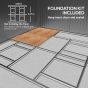 - Floor foundation included, with all parts pre-cut and pre-drilled