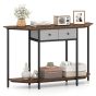 130 CM Console Table 2-Tier Entryway Table with Open Storage Shelf & 2 Drawers-Rustic Brown