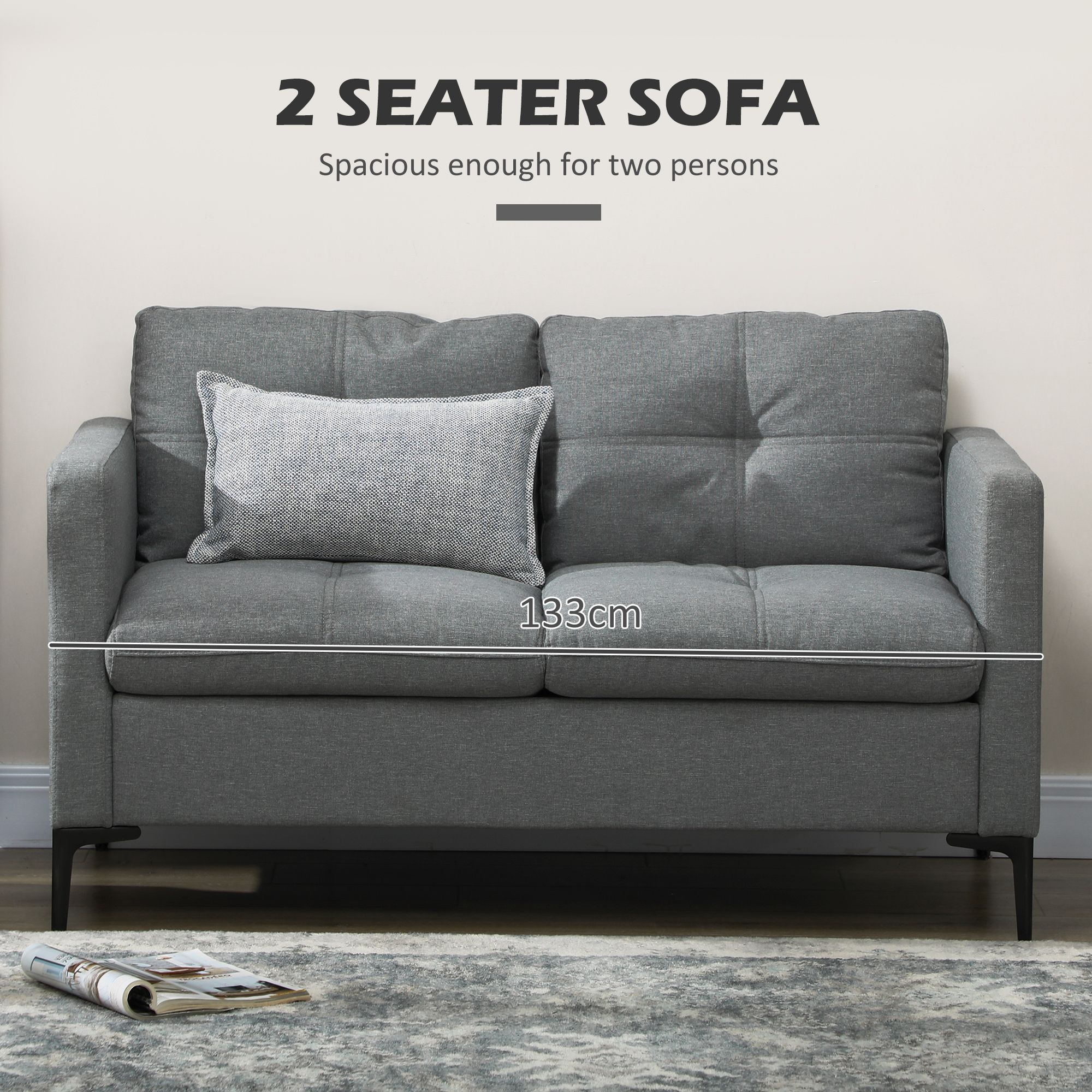 133cm Loveseat Sofa, Modern Fabric Couch with Steel Legs, Upholstered 2 Seater Sofa for Living Room, Bedroom, Dark Grey