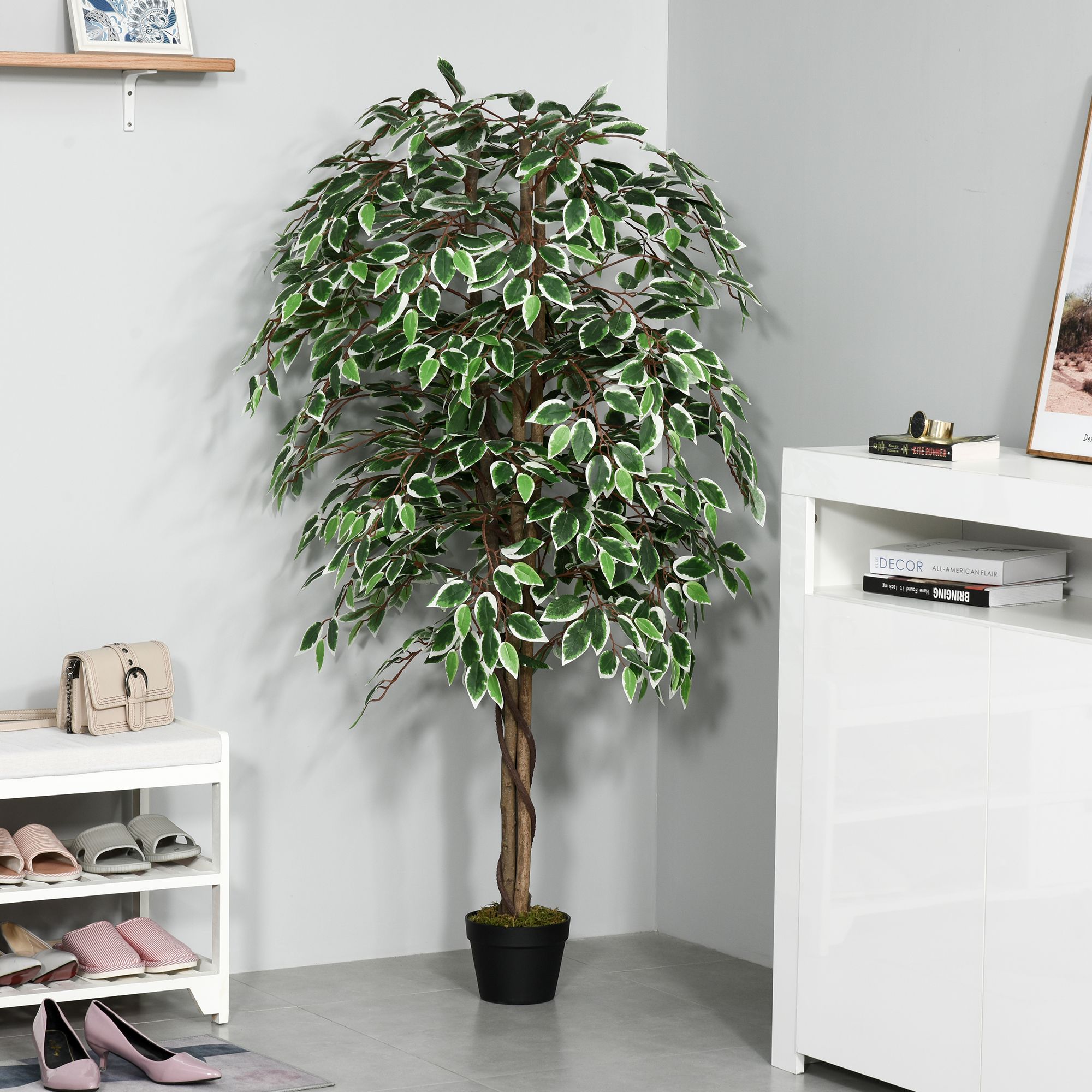 160cm/5.2FT Artificial Ficus Silk Tree with Nursery Pot, Decorative Fake Plant, for Indoor Outdoor Décor