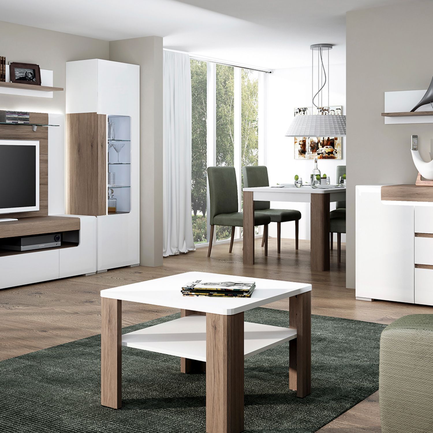 160 cm Dining Table. Fixed top 160 cm Table with easy clean gloss finished top. Warm and yet cool living and dining collection in white with San Remo Oak inset.