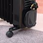 When the weather starts to turn icy, you will need this oil-filled radiator heater. Our oil-filled radiator with 7 heating pipes is perfect for keeping your bedroom, living room, home or office warm. Plus with three power settings, low, medium and high, you can find your preference temperature with total ease. The 360 degree wheels at bottom for easy movement. Don't let your fingers and toes freeze and trust in our oil heater to deliver warm heat from any room in the house.