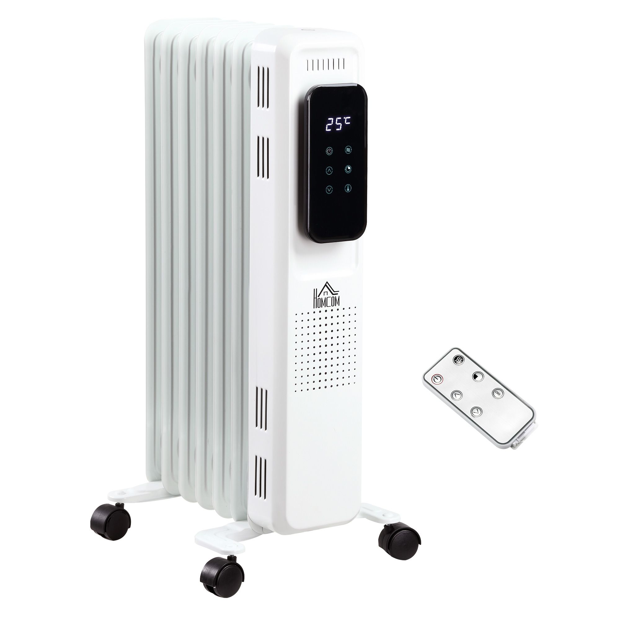 1630W Oil Filled Radiator, 7 Fin, Portable Electric Heater with LED Display, 24H Timer, 3 Heat Settings, Safety Cut-Off Remote Control-White