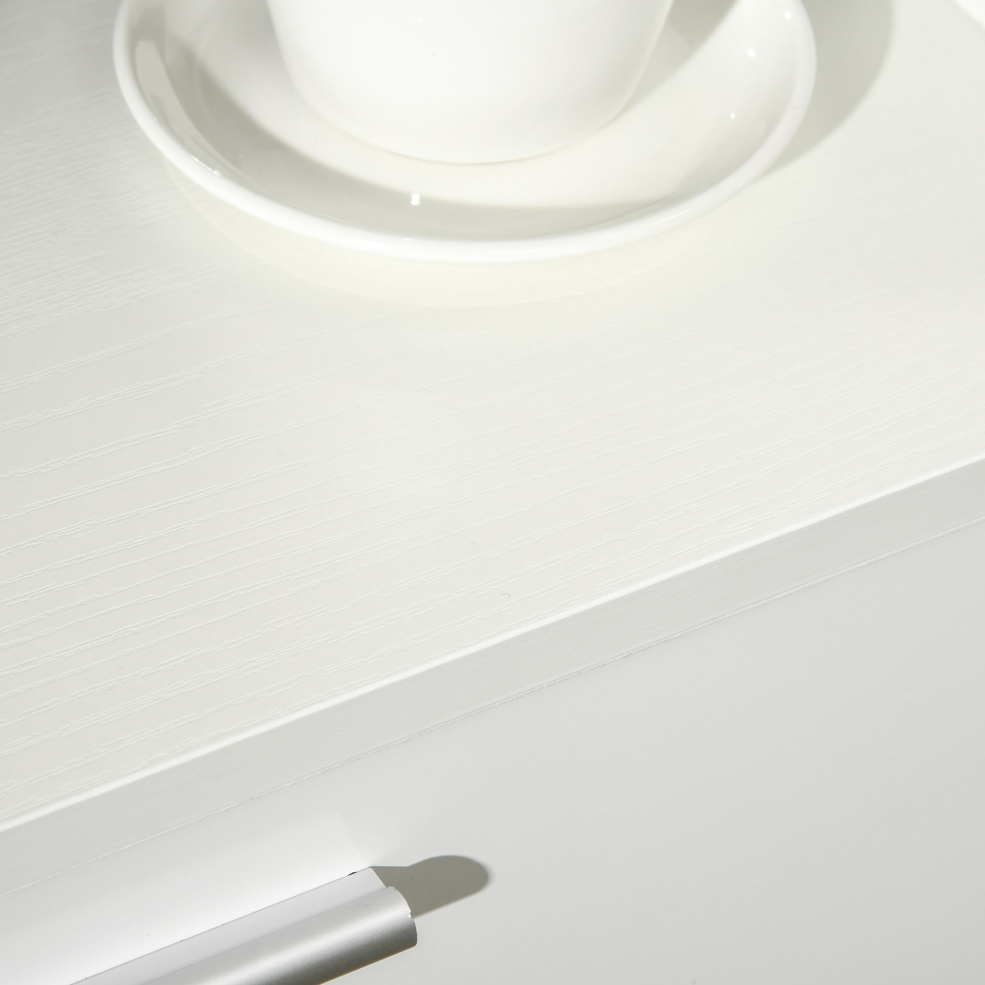 - Colour: High Gloss White Front Panel, White Wood Grain Side Panel