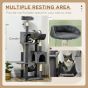 177cm Cat Tree for Indoor Cats, Multi-level Kitten Climbing Tower with Scratching Posts, Condos, Hammock, Perches, Toy Ball, Dark Grey