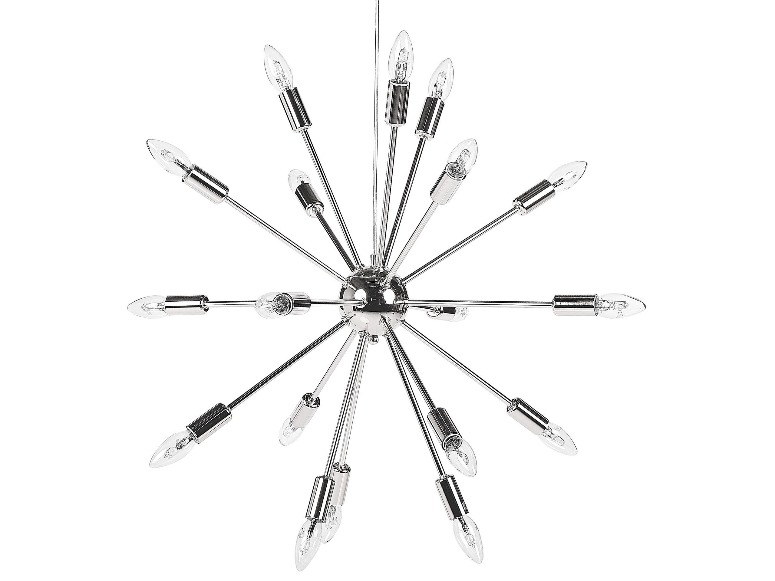 Glam up your living space with this unique ceiling lamp. Featuring 18 exposed bulbs and no shades, it illuminates any corner of your interior with strong, but diffused, light. Innovative metal construction and multiple lights make this pendant lamp a real eye-catcher for any modern living or dining room. Details: Color: Silver. Main material: Iron. Additional material: PVC. Weight: 2 Assembly: Requires Installation and Assembly
