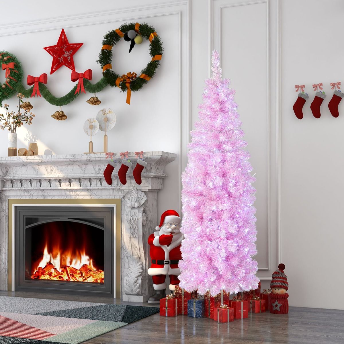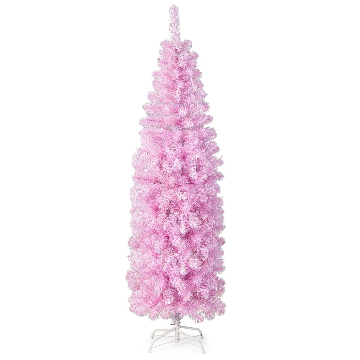 180 cm Pink Slim Xmas Tree with 475 Branch Tips and 250 Cold White LED Lights