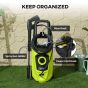 - Complete washer kits: Comes with a spray gun, a wand, a hose, an inlet adaptor, a snow foam bottle, a nozzle, and a nozzle cleaner. The gun, hose, and power cord have their own place to keep organized and won't be in a mess.