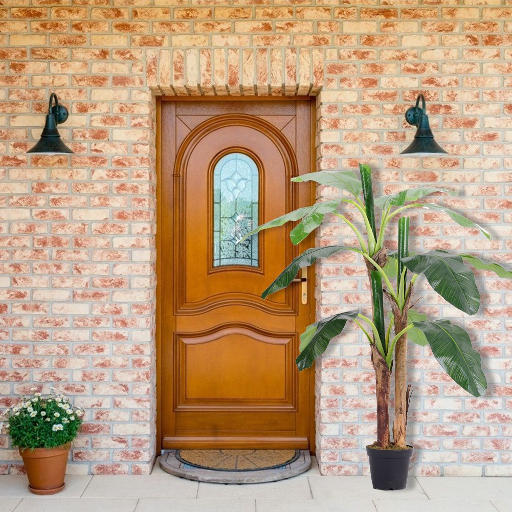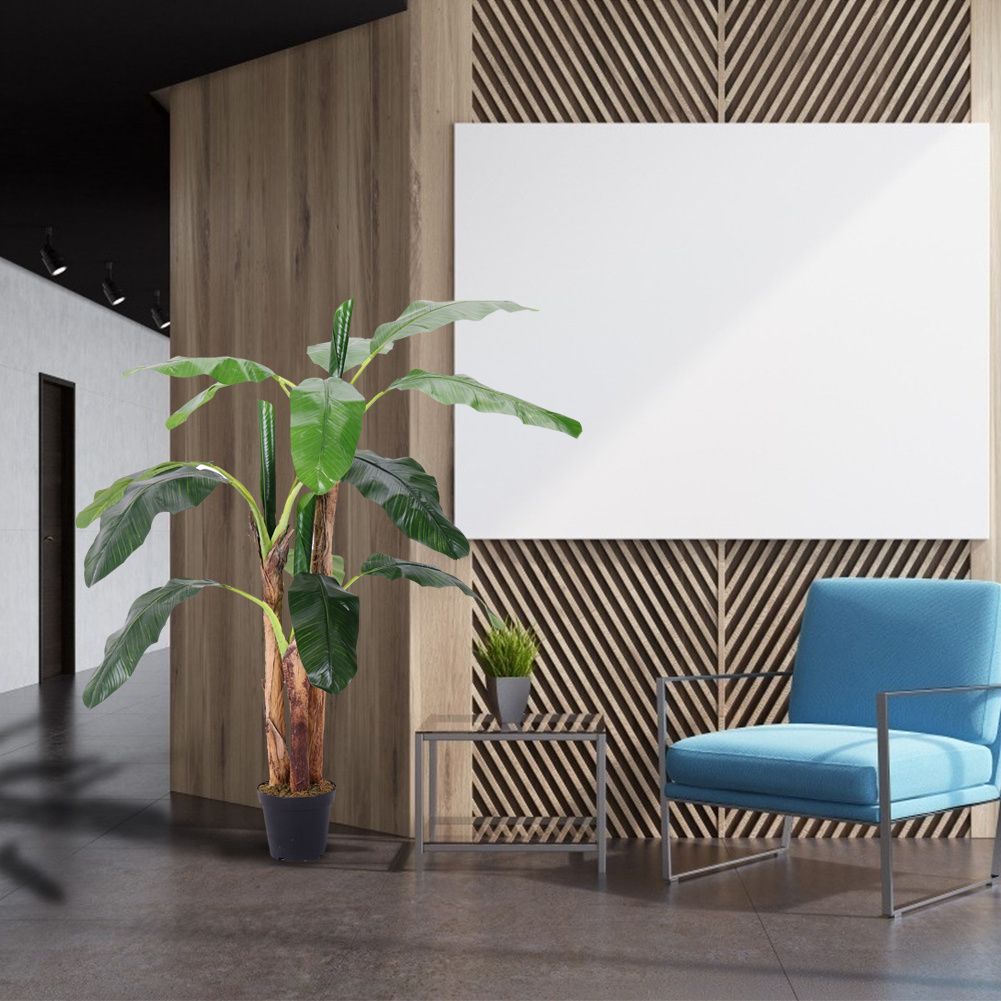 180cm H Lifelike Banana Artificial Tree 3 Trunk In Black Planter