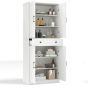 183cm Tall Kitchen Pantry with 4 Barn Doors and 3 Adjustable Shelves-White