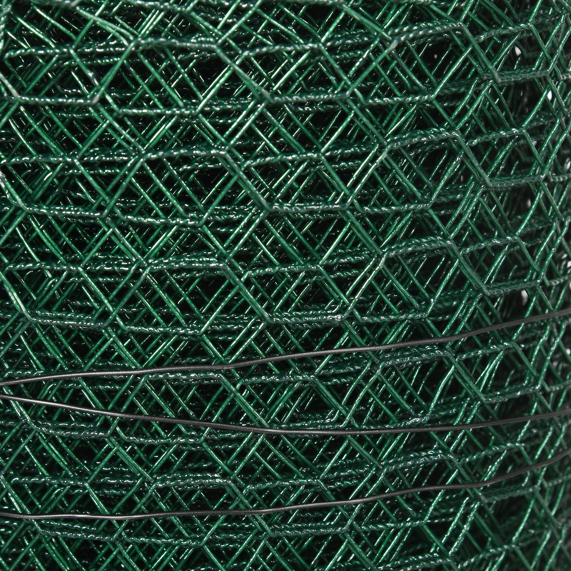 1m x 25m Chicken Wire Mesh, Foldable PVC Coated Welded Garden Fence, Roll Poultry Netting, for Rabbits, Ducks, Gooses, Dark Green
