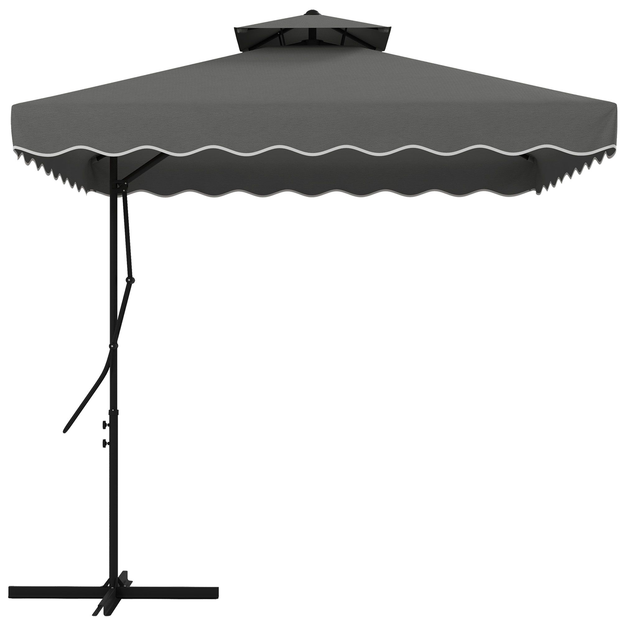 2.5m Square Double Top Garden Parasol Cantilever Umbrella with Ruffles, Dark Grey