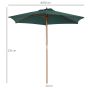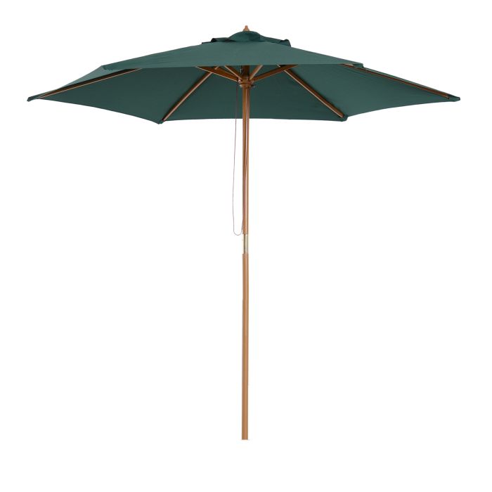 - 2.5m market parasol supported by 6 wooden ribs.