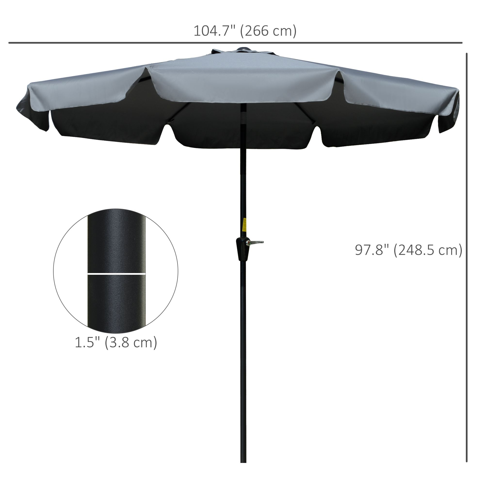 2.66m Patio Umbrella Garden Parasol Outdoor Sun Shade Table Umbrella with Ruffles, 8 Sturdy Ribs, Charcoal Grey