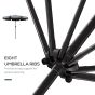 - Powder coated aluminium pole for a strong structure, with eight canopy ribs for extra support