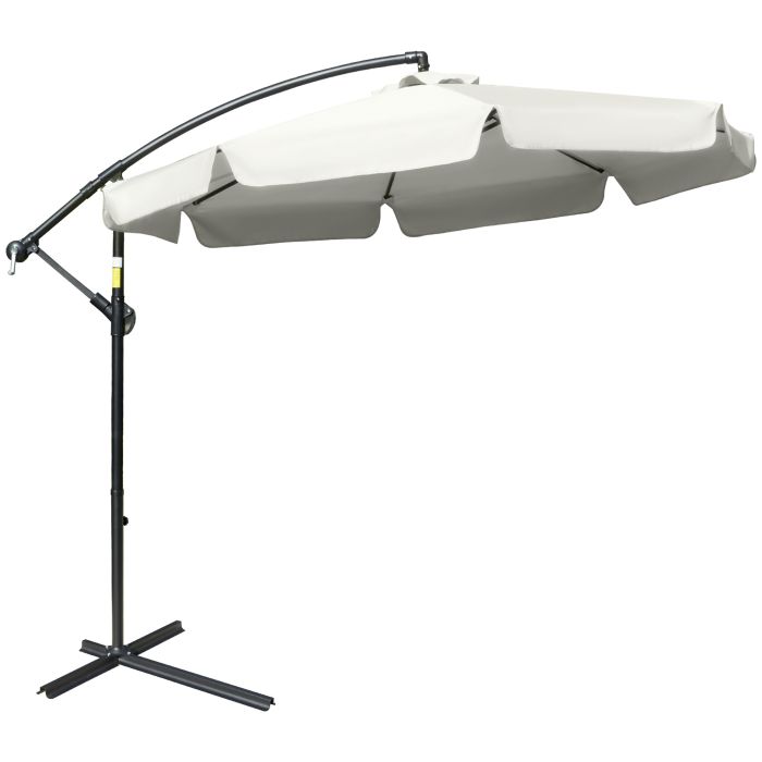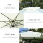 2.7m Cantilever Parasol Garden Banana Umbrella with Crank Handle and Cross Base for Outdoor, Hanging Sun Shade, Cream White