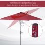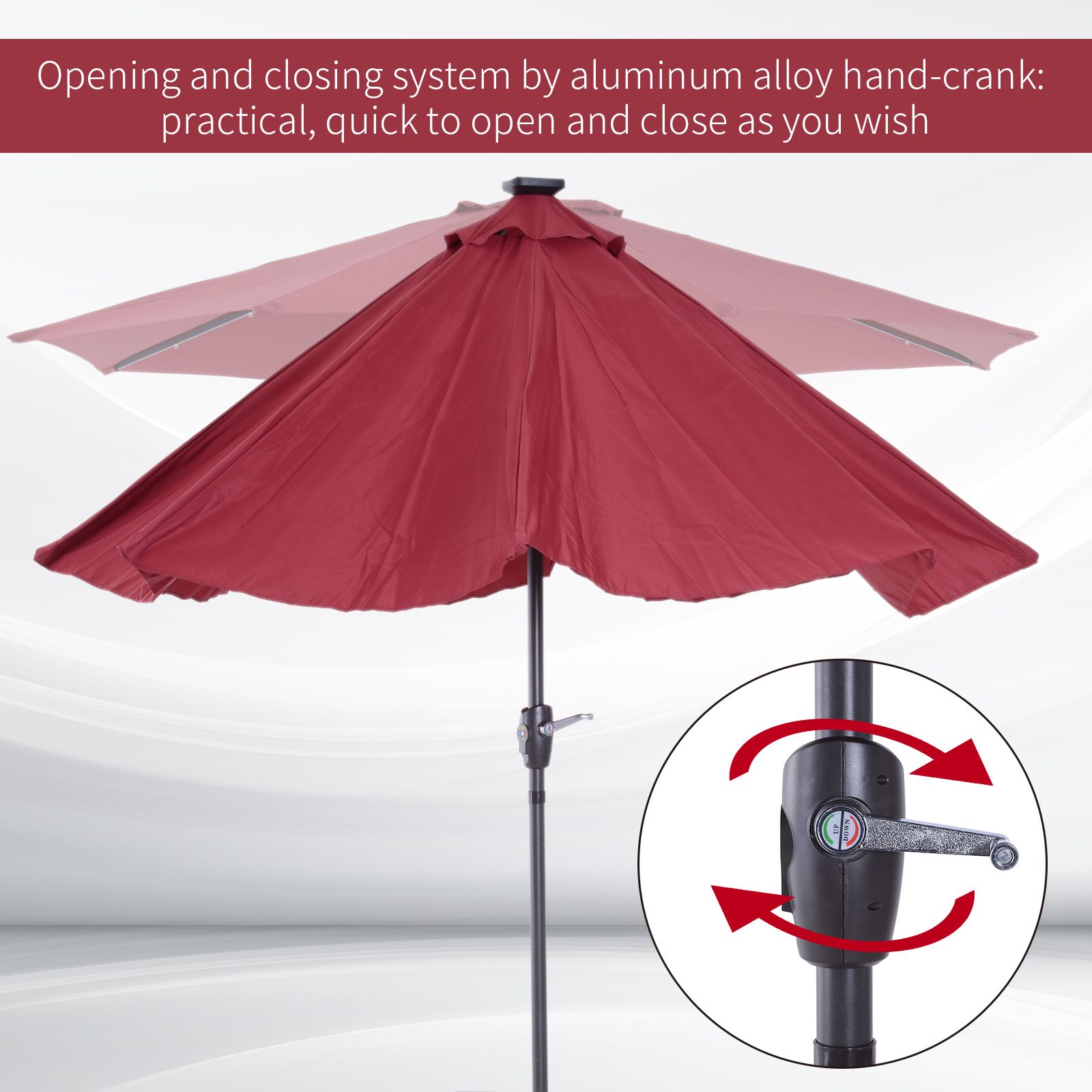2.7m Garden 24 LED Light Parasol Solar Outdoor Tilt Sun Umbrella Patio Club Party Event Manual Sun Shade w/ Hand Crank and 8 Ribs Red