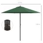 2.8m Patio Parasols Umbrellas Outdoor 6 Ribs Sunshade Canopy Manual Push Garden Backyard Furniture, Green