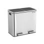 Recycling can be easy: With 2 sections side by side, you can sort your recycling and trash with a simple toss. All you need to do is to step on the pedal to open the lid, and you now have your hands free to throw away your trash or recycling. Without needing to touch anything with your hands, it's more hygienic. The 2 buckets inside have handles so that they can be easily lifted out and emptied.Puppy- and kid-proof: If you get tired of cleaning up the mess that your naughty husky or kid leaves you after they overturn the garbage basket, then this sturdy bin with lids is perfect for you - it can't be opened without first using the pedal.