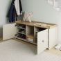2 Door Shoe Bench with Oak Effect Top and Concealed Storage - Cream