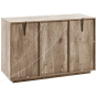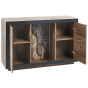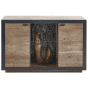 Introduce style and a rustic vibe to your living room with this sideboard. The piece features an attention drawing, artificial tree stump in the middle, which comes with a LED light - thanks to it, you'll be able to illuminate your room with pleasant, ambient light. What's more, the light can also be adjusted using a pilot - the brightness can be toned up or down. In front of the stump, there's a glass shelf, on which you can display your favourite decorations or photos. Besides that, the furniture also has other storage space - a set of shelves, hidden behind doors. Lastly, the piece requires simple maintenance, and doesn't need to be cleaned daily to last for many years, as it was made out of high-quality MDF. Details: Color: Light Wood, Black. Main material: MDF. Additional material: Glass. Weight: 48 Assembly: Full Assembly Required