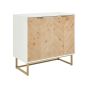 Organize your bedroom or living space with this Scandinavian-inspired sideboard. The piece features two doors behind which lie capacious shelves, perfect for storing various trinkets, as well as clothes or other important items. Crafted out of durable MDF in a white colour, with light wooden veneer on the front, the sideboard is going to blend seamlessly into a variety of modern, minimalistic interior design styles. Details: Color: White, Light Wood, Gold. Main material: MDF. Additional material: Metal. Weight: 26 Assembly: Full Assembly Required Legs Height: 8